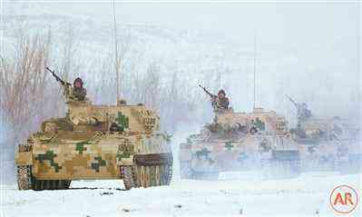 1月13日,新疆軍區(qū)某裝甲團(tuán)組織裝甲裝備進(jìn)行冰雪地機動行軍訓(xùn)練。