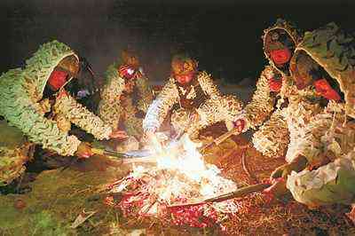 冬季夜間野炊,戰(zhàn)士們自己動(dòng)手,飯菜飄香。