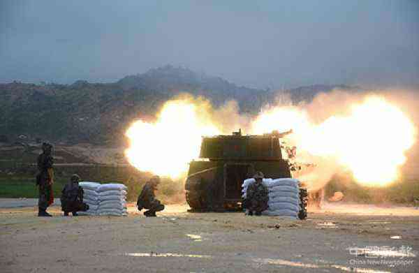 在一字排開的炮擊陣地上,一發(fā)發(fā)炮彈呼嘯而出,猶如一條條火龍,直撲前方目標(biāo)區(qū)域。頃刻間,氣流涌動(dòng)、火光沖天。