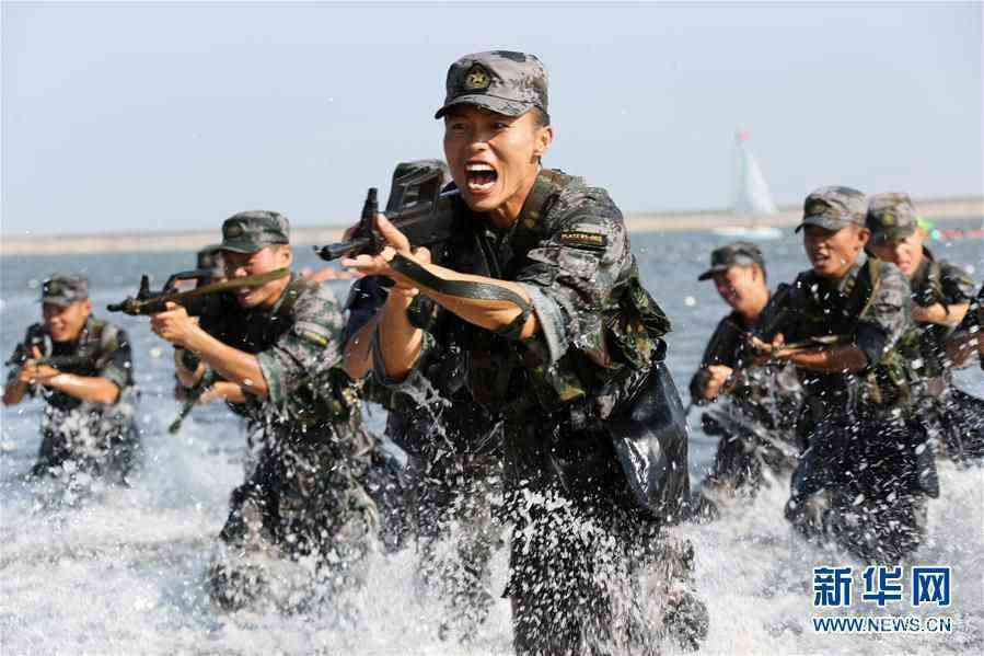 “南京路上好八連”官兵在某海域進(jìn)行搶灘登陸訓(xùn)練(2015年7月23日攝)。 新華社發(fā)(張寧峰 攝)