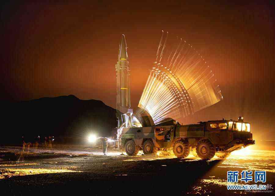 演訓(xùn)中,火箭軍某旅在發(fā)射場(chǎng)進(jìn)行夜間火力突擊演練(資料照片,多重曝光)。 新華社發(fā)(劉明松 攝)