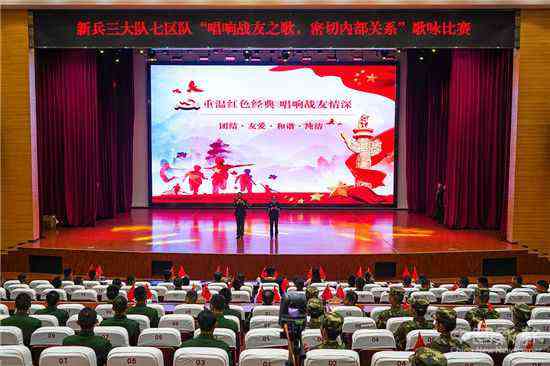 隨后,《從古田再出發(fā)》《中國軍魂》《官兵友愛歌》等十余首軍旅歌曲接連上演,參賽隊伍使出渾身解數(shù),情景劇表演、隊形變換、詩歌朗誦等多種形式,讓人耳目一新。尤其是新兵連“兄弟”樂隊組合,一首《兄弟情深》,朗朗上口的旋律,一經(jīng)唱響便火爆全場,官兵們反響熱烈。