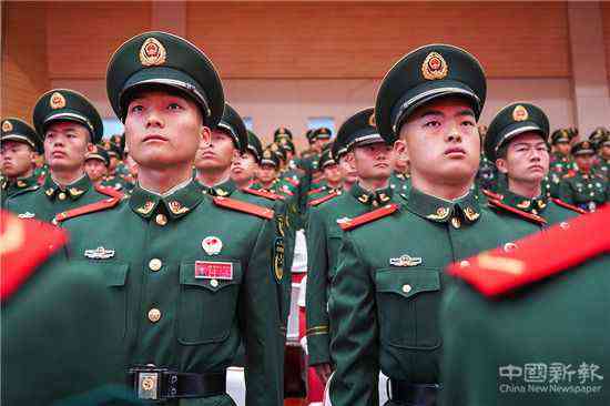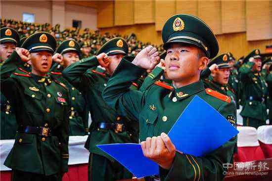 授銜儀式在莊嚴(yán)的軍歌中拉開了帷幕,新兵們精神抖擻,神情激昂,一同唱響屬于他們的歌曲。“現(xiàn)授予吳鑫等同志列兵警銜······”新兵團(tuán)領(lǐng)導(dǎo)宣布授銜命令后并為新兵代表戴上了軍銜及標(biāo)志服飾。同時(shí),新兵們互相為戰(zhàn)友戴上警銜、帽徽、臂章以及國防服役章等,這標(biāo)志著他們自此成為了一名光榮的武警戰(zhàn)士。