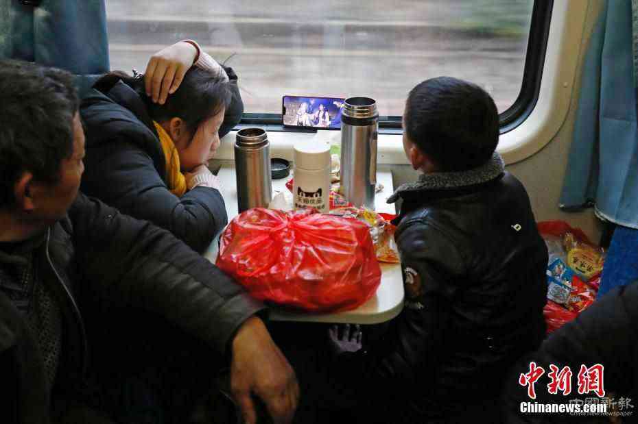 1月18日,在上海開往成都的K4663次列車上,旅客們正通過手機、iPad等移動設(shè)備,度過長達42小時的回家路。2020年春運中,平均時速120公里的綠皮車依然承擔(dān)著巨大任務(wù)。中新社記者 殷立勤 攝