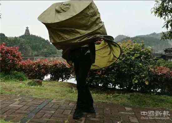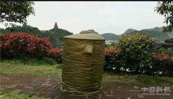 使用完畢,回收“廁所”時(shí),只見余凱生站起身來,將它提起,然后收縮,“廁所”變成了一塊“大餅”,緊接著,余凱生快速折疊“大餅”,幾秒鐘的功夫,它就變成了比成人的棉帽稍大的超薄的物件了。