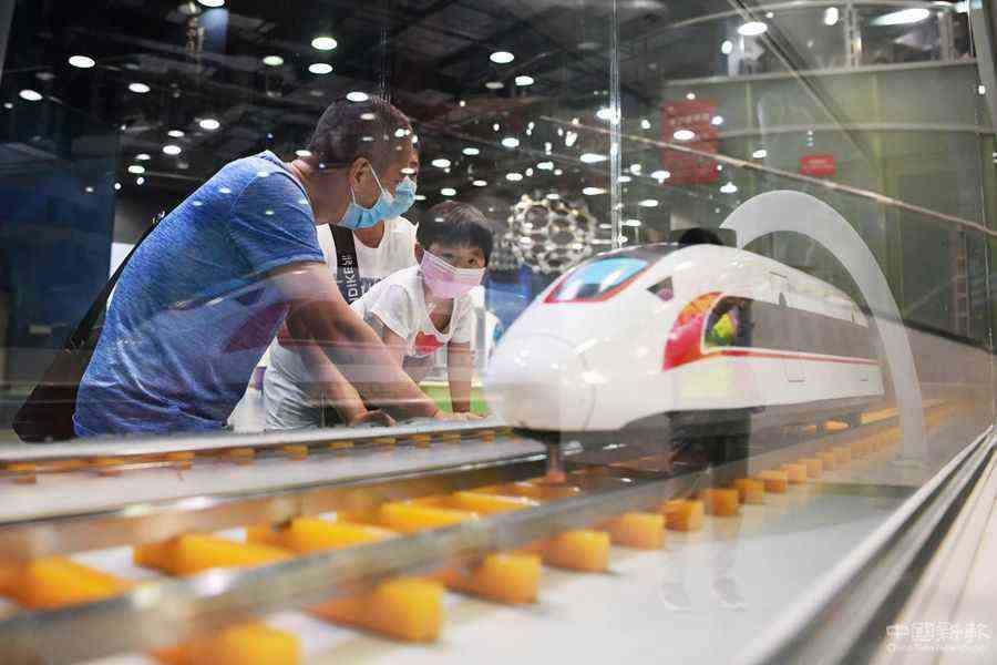 6月2日,觀眾在中國(guó)科技館觀看高鐵復(fù)興號(hào)模型。 中國(guó)日?qǐng)?bào)記者 魏曉昊 攝