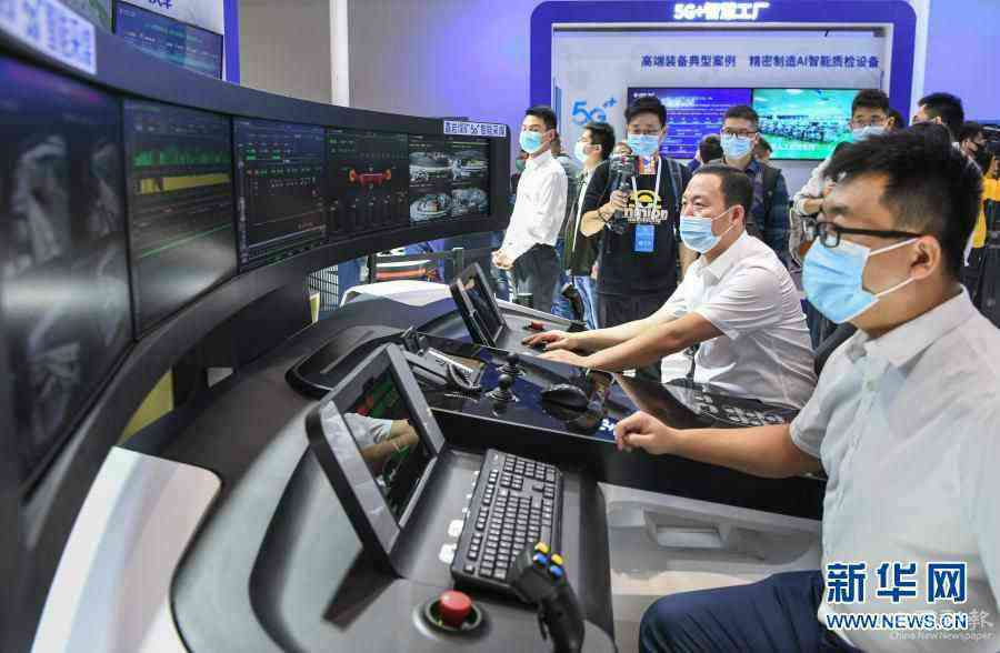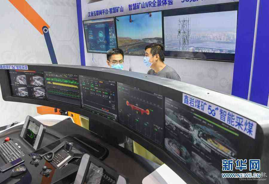11月19日,工作人員演示一套5G智能采煤系統(tǒng)。新華社記者 程敏 攝