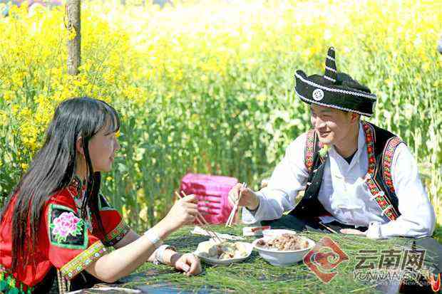 開新街期間,只要來到峨山,就會欣賞到人在花中游、舞在花中躍、歌在花中揚(yáng)的動人場景,以及旖旎的田園風(fēng)光和峨山彝族熱情好客的笑臉。春節(jié)期間,在萬畝油菜花海區(qū)依然會有最貼近生活、最貼近兒時(shí)記憶的活動。如果要體驗(yàn)彝族的迎賓儀式,那么請于2月5日上午9時(shí)前抵達(dá)富良棚鄉(xiāng)寨門口,漂亮的彝家姑娘會穿上節(jié)日盛裝,唱著敬酒歌,敬上一杯進(jìn)寨酒,讓您感受到峨山人民的熱情好客和彝家美酒的醇香。峨山不只為各位游客準(zhǔn)備了非遺文化遺產(chǎn)和美景,還準(zhǔn)備了最具農(nóng)味的饕餮盛宴,更為各位游客的后備箱準(zhǔn)備了春節(jié)期間走親訪友的佳肴,比如塔甸青菜和火燒干巴、富良棚烤乳豬、大龍?zhí)饵S牛肉和土炸紅糖、甸中豆腐腸和咸菜、岔河核桃煮雞蛋等。