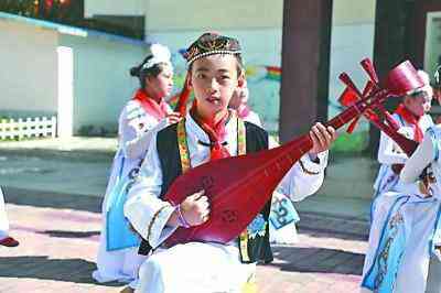 四川省阿壩州松潘縣城關(guān)小學(xué)“非物質(zhì)文化遺產(chǎn)”文化課上,學(xué)生彈奏土琵琶。本報(bào)記者?,摂z