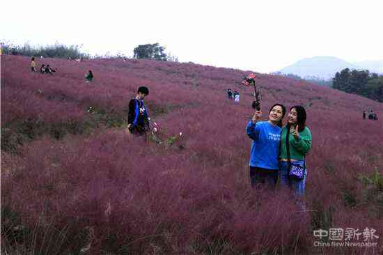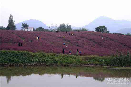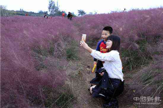 2020年10月18日,安徽省合肥市廬江縣湯池鎮(zhèn)湯果公路舒廬干渠南側(cè)山坡,大批游客在近百畝的粉黛亂子草海旁觀光、留影,盡情享受秋日周末美好時(shí)光。 (巢志斌 攝影報(bào)道)