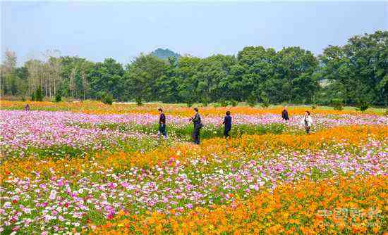 中國(guó)新報(bào)訊(特約記者 彭林海 通訊員 鄭國(guó)華 攝影報(bào)道)10月27日,湖南新寧崀山鎮(zhèn)崀芴村蔣家灘田間,游客們正在花海中興致勃勃地賞花拍照。今年,青年婦女肖小芳投入資金,在該村流轉(zhuǎn)土地,聘用當(dāng)?shù)貗D女,家門口就近打工,幫其連片栽種、管理百曰菊、格?;?、金盞菊、雞冠花等多種觀賞型花卉,成功創(chuàng)辦起了50余畝的鄉(xiāng)村休閑觀光花海基地。近期天氣轉(zhuǎn)晴,各種花卉競(jìng)相盛開,為崀山旅游增添了又一道亮麗的新風(fēng)景,每天吸引著賞花拍照游客絡(luò)繹不絕。