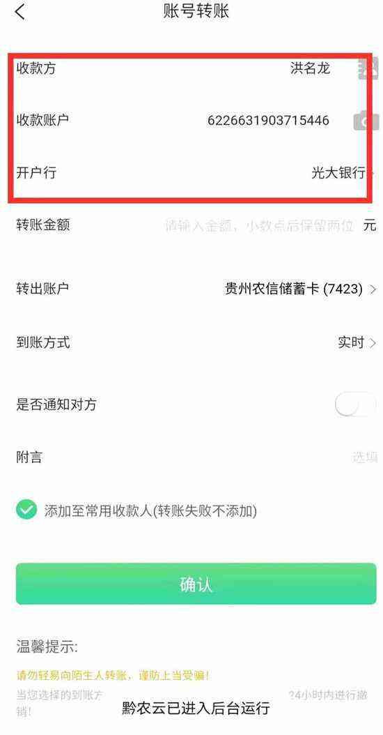工作人員便將電話移交給了財務,讓財務指揮記者操作。但財務人員說,直接給對公賬戶打款不得行,需要在手機銀行里操作。