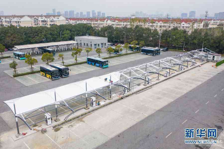 這是12月7日拍攝的建設(shè)中的蘇州市蓮花停保場(chǎng)充電站(無(wú)人機(jī)照片)。新華社記者 李博 攝