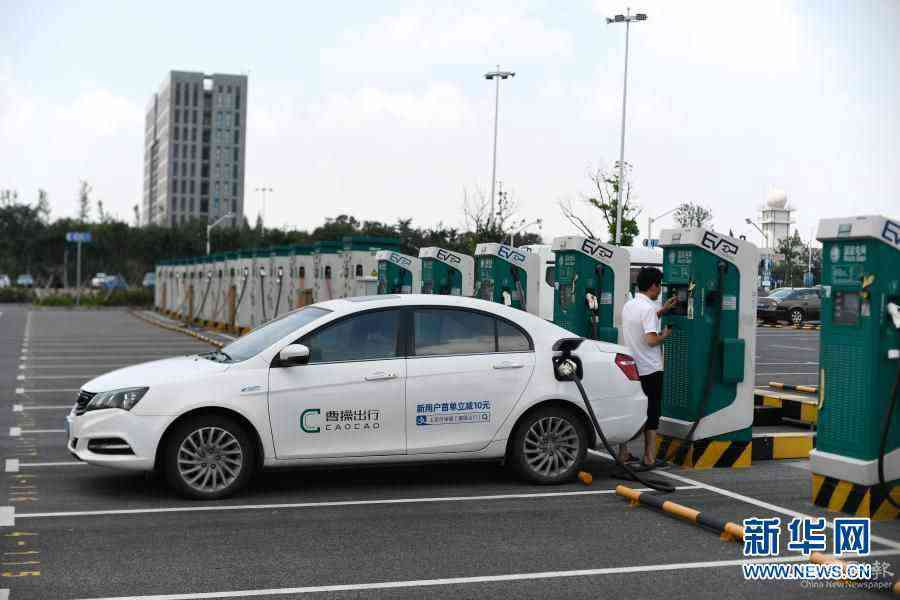 駕駛員在杭州蕭山國(guó)際機(jī)場(chǎng)4號(hào)停車(chē)場(chǎng)國(guó)家電網(wǎng)充電站為電動(dòng)車(chē)充電(9月1日攝)。新華社記者 黃宗治 攝