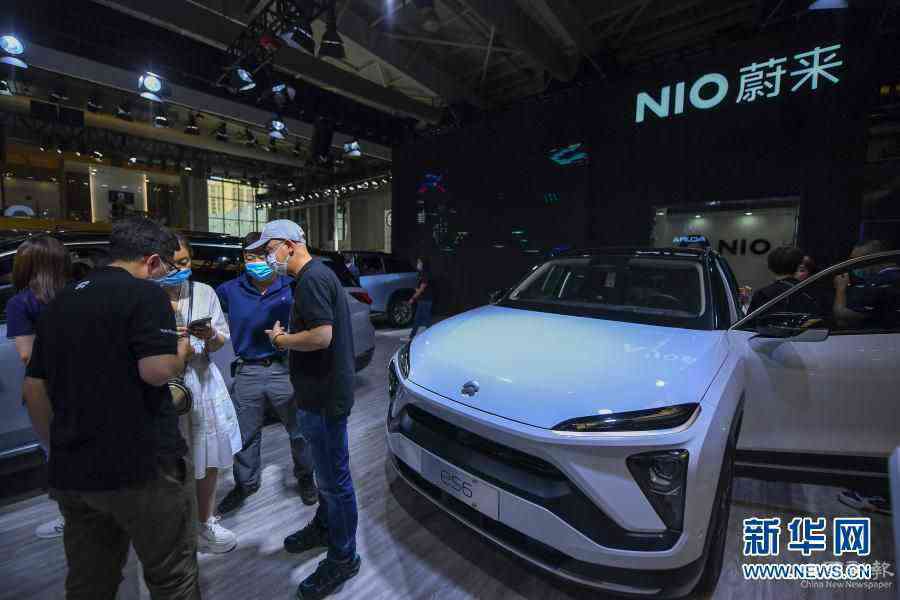 在第十七屆中國(guó)(長(zhǎng)春)國(guó)際汽車(chē)博覽會(huì)現(xiàn)場(chǎng),觀眾在蔚來(lái)新能源汽車(chē)展臺(tái)參觀(7月11日攝)。新華社記者 張楠 攝