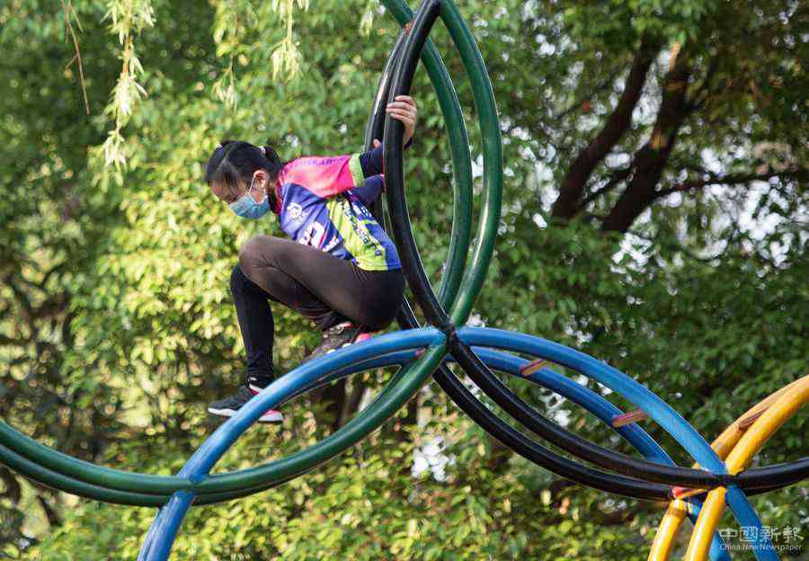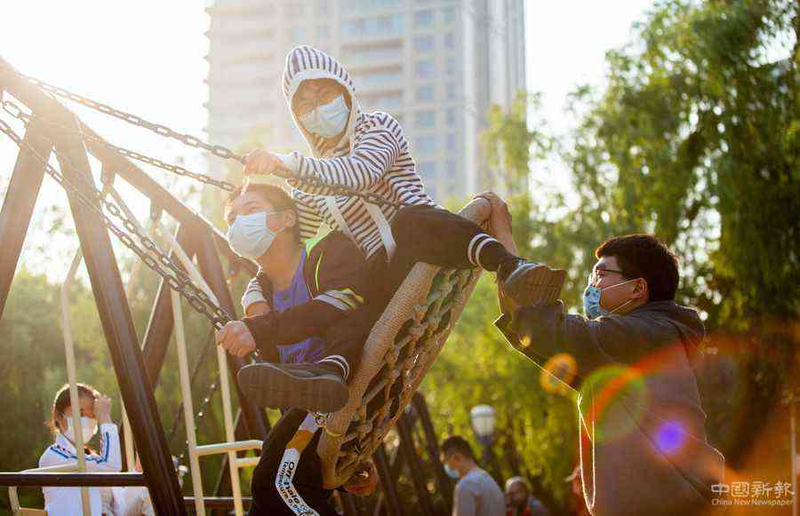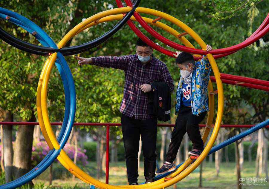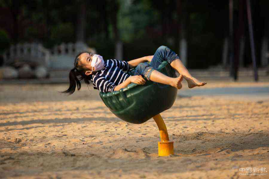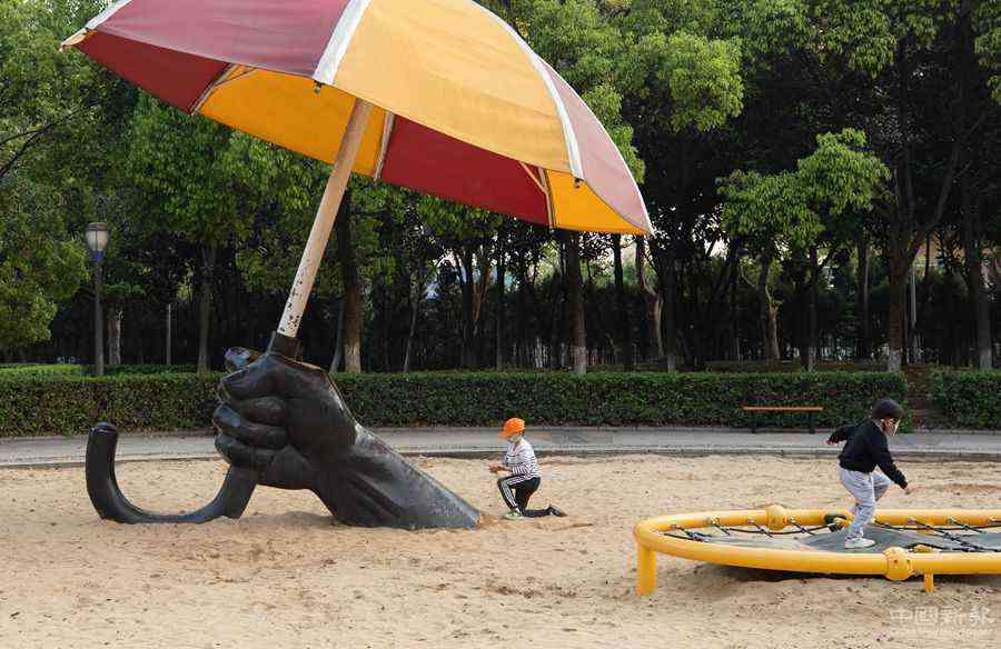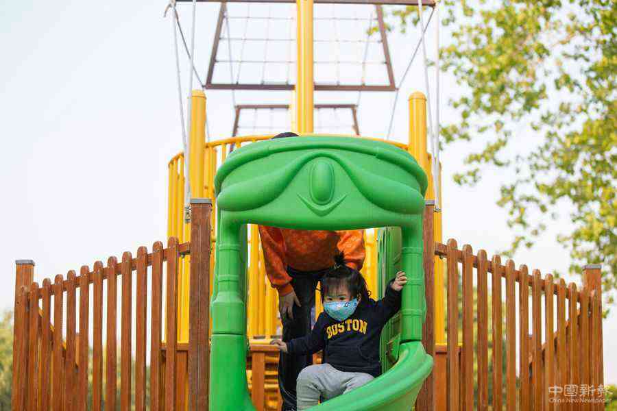 中國日報4月13日電 4月12日,小朋友佩戴口罩在恢復開放的武漢漢口江灘公園沙灘游樂場游玩。當天,武漢陽光明媚,市民外出踏青、游玩,在做好防護的同時感受美好的春光。