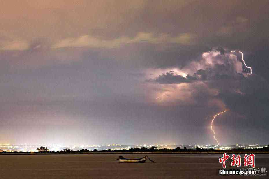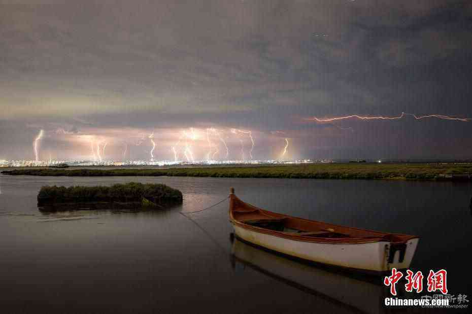 近日,希臘塞薩洛尼基迎來雷暴雨,天際出現(xiàn)多道閃電,場面壯觀。圖片來源:視覺中國