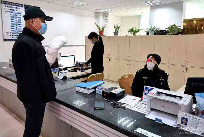 圖:5日,相關(guān)部門為臺胞陳建男辦結(jié)申請一次性出境手續(xù)\中新社
