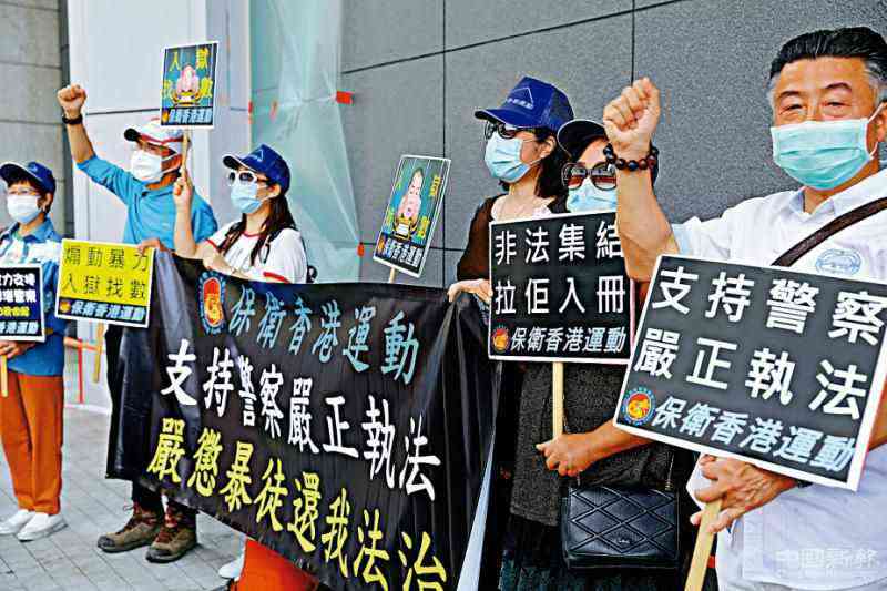 圖:民間團體“保衛(wèi)香港運動”日前在香港警察總部舉行集會,支持警方依法拘捕反中亂港分子\中通社