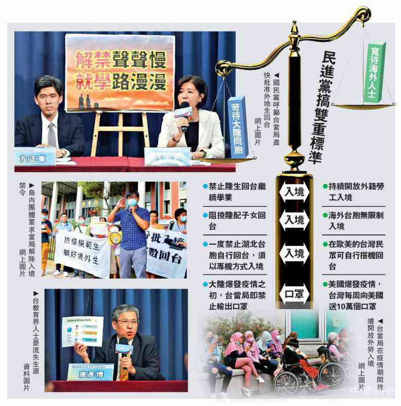 臺當(dāng)局一邊禁止包括陸生等外地生回臺讀書,一邊卻在疫情期間繼續(xù)開放外籍勞工入境,進(jìn)行集中隔離,而且還隱瞞地方政府。事件被揭發(fā)后,當(dāng)?shù)刈h員痛批蔡政府引進(jìn)外勞卻把地方蒙在鼓里,萬一出現(xiàn)防疫破口,誰來負(fù)責(zé)?兩岸學(xué)者則批評臺當(dāng)局搞雙重標(biāo)準(zhǔn),以防疫為由不準(zhǔn)陸生入境,卻開放大批外勞入島。這根本就是民進(jìn)黨當(dāng)局的“反中”思維作祟。