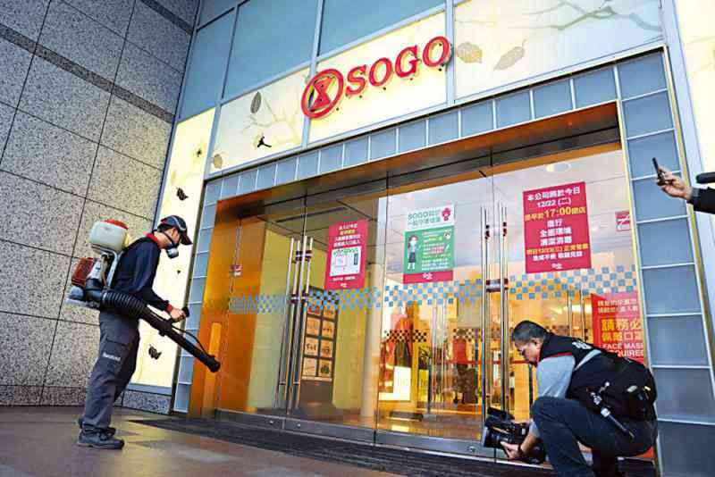 圖:清潔人員在長榮確診機(jī)師到過的百貨商店消毒\中央社