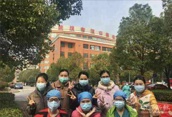 支援武漢漢口醫(yī)院的廣州中山二院的白衣天使們,下早班在醫(yī)院門口合影留念.