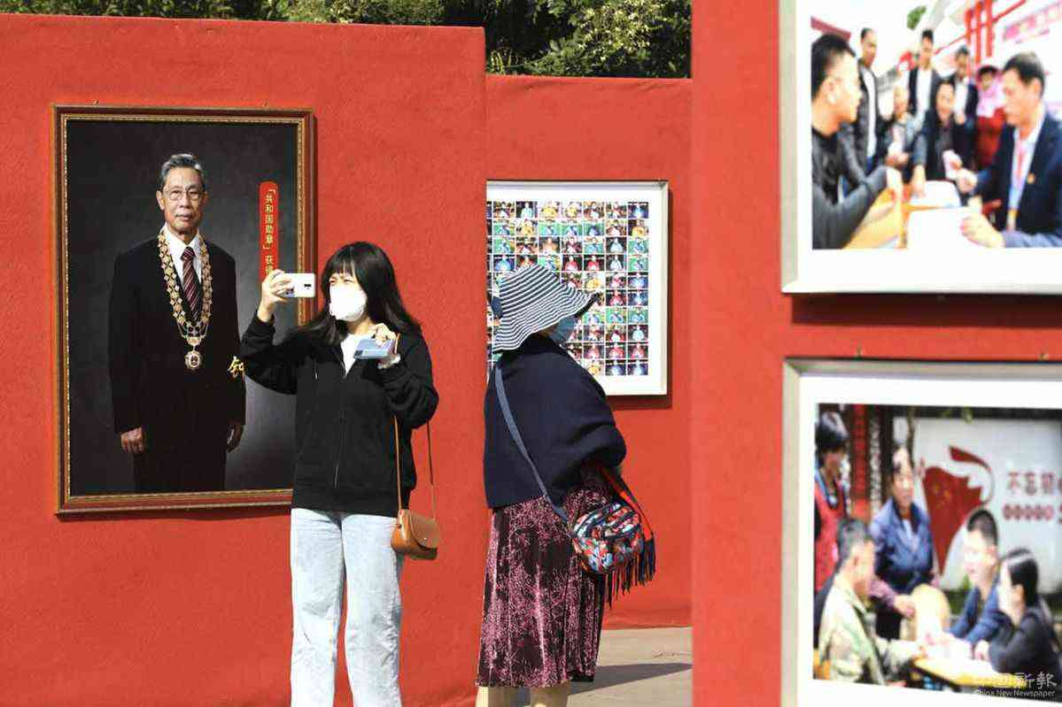 9月20日,觀眾與“共和國勛章”獲得者鐘南山院士肖像作品自拍留影。 中國日報(bào)記者 朱興鑫 攝