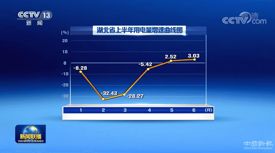 這是湖北省上半年用電量增速曲線。疫情沖擊下,用電量在2月極速下跌,從5月開始恢復(fù)正增長。三個(gè)月時(shí)間,黨中央舉全國之力,取得武漢保衛(wèi)戰(zhàn)、湖北保衛(wèi)戰(zhàn)決定性成果。同時(shí),協(xié)同各方力量,從財(cái)政稅收、金融信貸、投資消費(fèi)等多個(gè)方面,一攬子政策全力支持湖北經(jīng)濟(jì)社會(huì)發(fā)展。