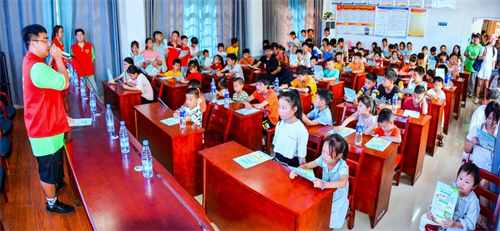 7月10日,新寧清江橋鄉(xiāng)桃花村,來自長(zhǎng)沙的青年志愿者正在村部為該村小學(xué)生和兒童支教上課,進(jìn)行暑期防溺水安全知識(shí)教育。
