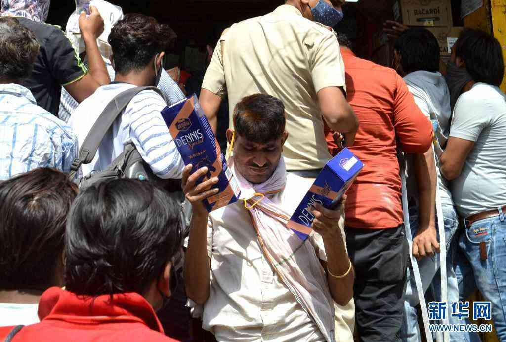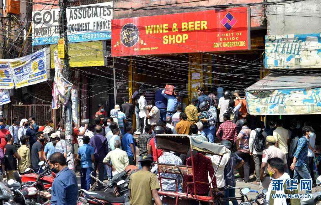 4月19日,印度新德里居民在全城實施封鎖前搶購酒品。新華社發(fā)(帕塔·薩卡爾攝)