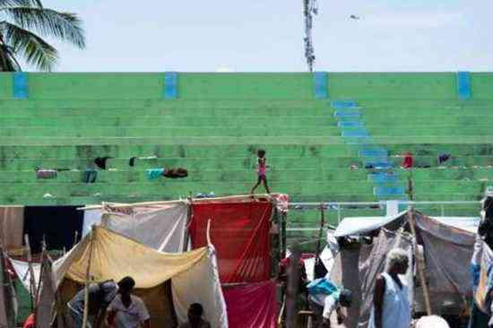 8月21日,一名女孩走在海地萊凱用作臨時避難所的體育場內(nèi)。圖源:新華社