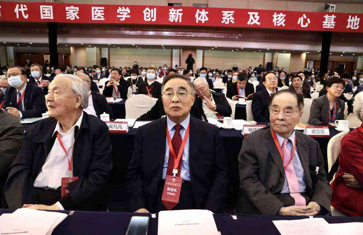 4月17日,“人民英雄”國家榮譽(yù)稱號(hào)獲得者張伯禮(中)等專家出席首屆中國醫(yī)學(xué)發(fā)展大會(huì)。 中國日報(bào)記者 朱興鑫 攝