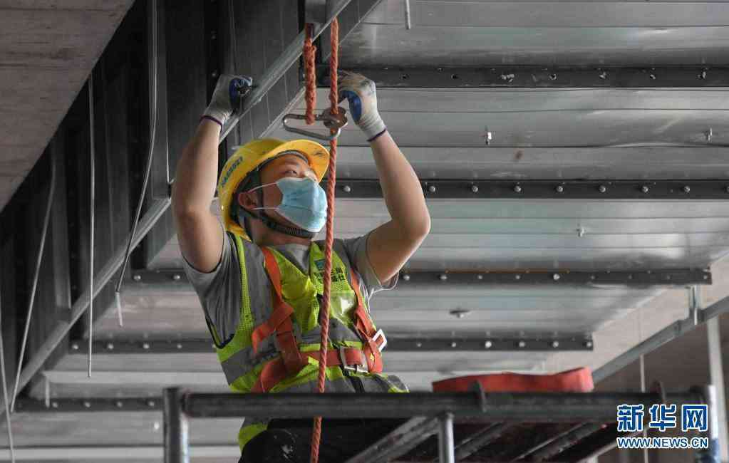 5月2日,工人在武漢同濟(jì)航天城醫(yī)院工地施工。新華社記者 程敏 攝