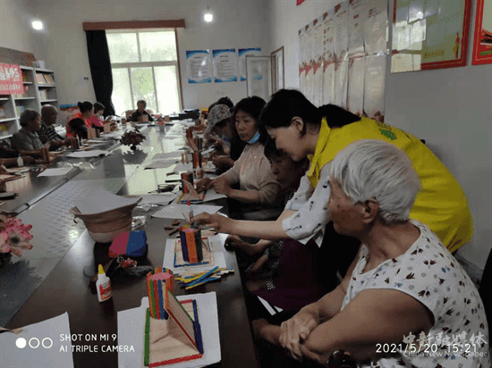 看到“五彩的圓筒、整齊的平板、巧妙的支架”,老人們說,“我要在展示板上放我和老伴的照片,和和美美最重要”、“我想在上面寫字,寫上開心、快樂、健康”、“我要在收獲筒里放感謝國家的政策,有好政策才有好生活”... 活動現場氣氛活躍。春曉社工對大家說:“今天我們帶領大家制作心靈庭院,用五彩繽紛的雪糕棒制作收獲筒,大家可以將生活中的收獲寫下來,放進去。制作展示框,將生活中最美的風景展示出來。將他們放到心靈庭院里,讓我們的心靈每天都收獲滿滿、風景美麗”... 一場為提升老年人的生活幸福感、實現老有所樂的活動在歡樂中進行。