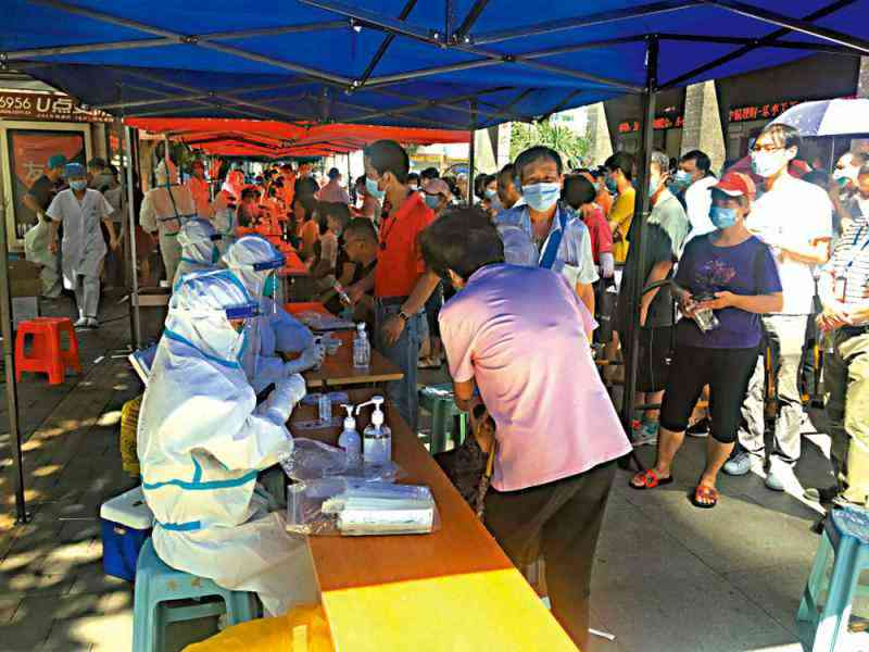 圖:圖為廣州出現(xiàn)確診病例后,相關(guān)社區(qū)啟動大規(guī)模核酸檢測。\大公報記者敖敏輝攝