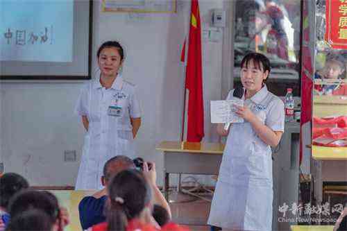 在隨后開展的健康講座中,邵東市人民醫(yī)院眼保健科副主任醫(yī)師郭超翅為學(xué)生們講述了近視的成因及危害,并分享了頭頂球、拉吊環(huán)、走迷宮、扭屁股等健康運動小游戲;醫(yī)院重癥醫(yī)學(xué)科副主任賀偉、護士張乙脂、李鸚鵡還為學(xué)生們現(xiàn)場示范了心肺復(fù)蘇的操作流程和操作方法。小記者胡晨昊、黃柳巖等學(xué)生自告奮勇,在醫(yī)護人員的幫助下現(xiàn)場學(xué)起了心肺復(fù)蘇。