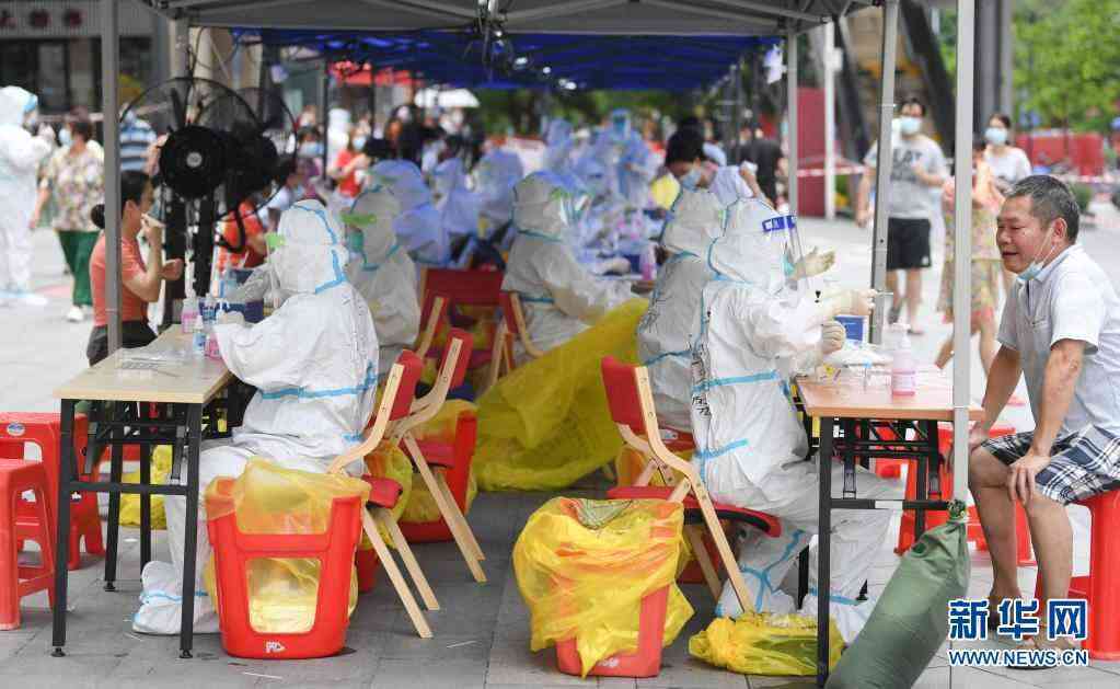 6月12日,在廣州荔灣區(qū)白鶴洞街廣鋼新城,醫(yī)務(wù)人員為居民進(jìn)行核酸檢測(cè)采樣。新華社記者 鄧華 攝