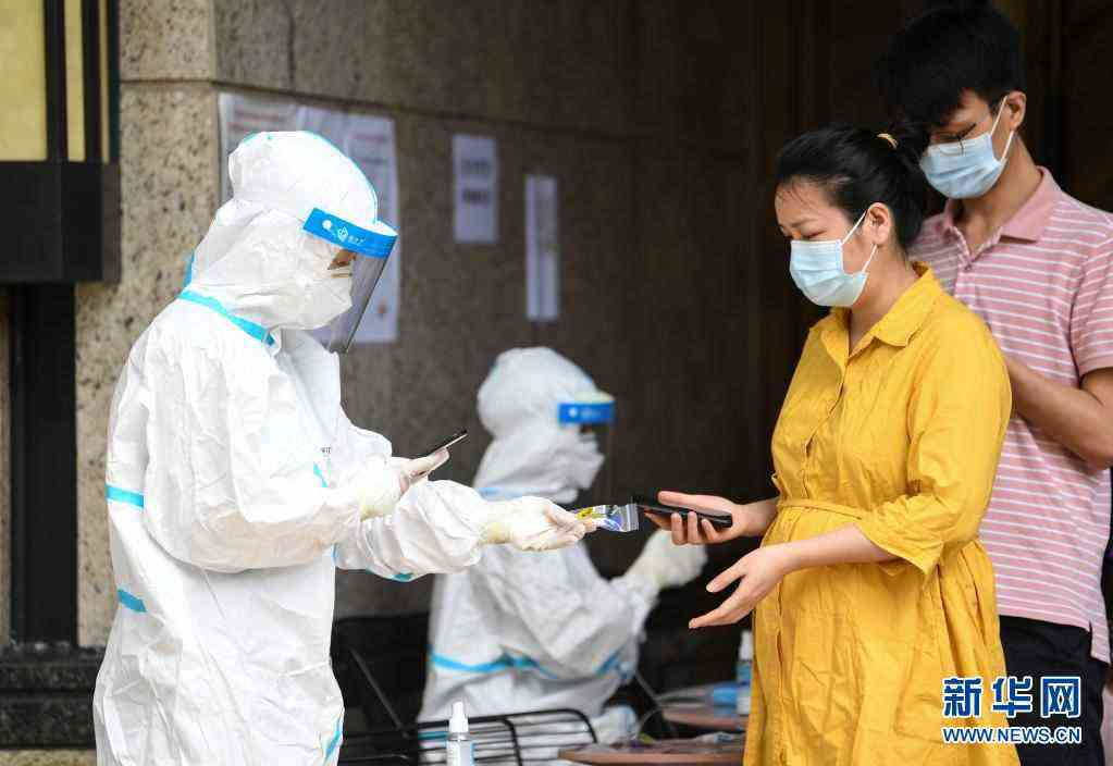 6月12日,在廣州荔灣區(qū)白鶴洞街廣鋼新城一小區(qū),物業(yè)人員給完成核酸檢測(cè)的居民噴灑消毒液。新華社記者 鄧華 攝