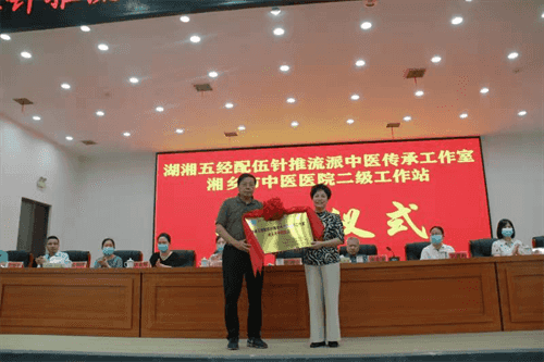 “湖湘五經配伍針流派推學術傳承工作室----湘鄉(xiāng)市中醫(yī)醫(yī)院二級工作站”授牌
