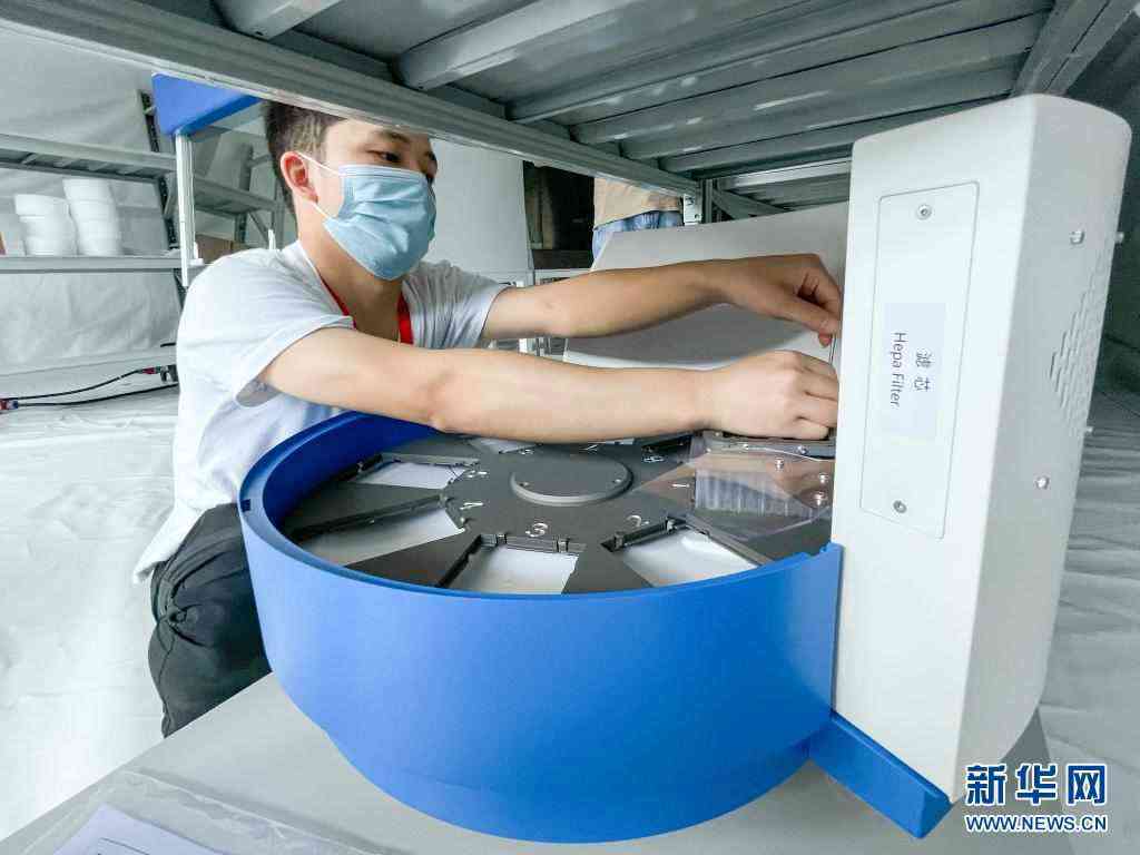 8月10日,在江蘇揚(yáng)州國際展覽中心,工作人員調(diào)試全自動核酸提取純化儀。新華社記者 李博 攝