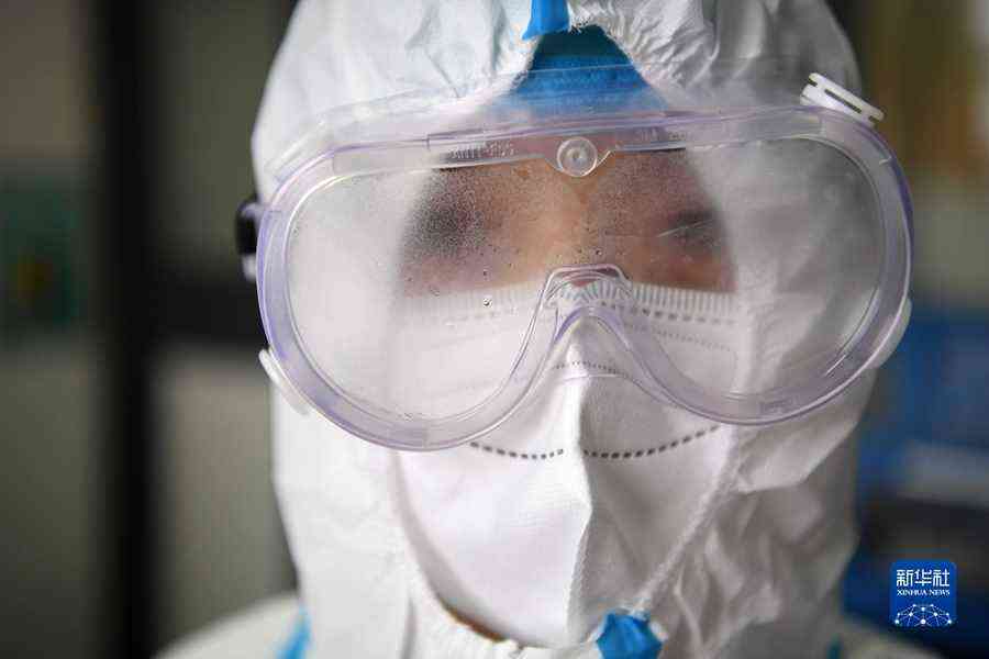 10月21日,蘭州大學(xué)第二醫(yī)院檢驗(yàn)醫(yī)學(xué)中心檢驗(yàn)師彭玲玲的防護(hù)鏡上沾滿了霧氣。新華社記者 陳斌 攝