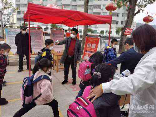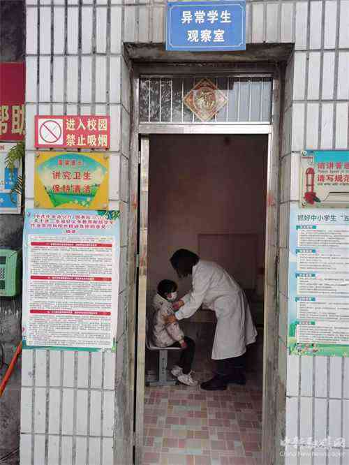 (圖為班主任老師在進行晨檢)