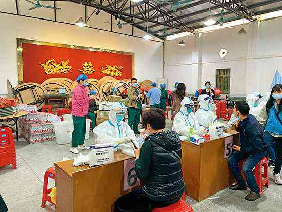 圖:東莞連夜進行全民核酸檢測,其中大朗鎮(zhèn)已采樣超80萬人。/受訪者供圖