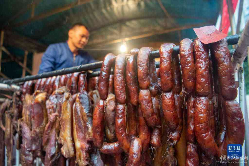 12月18日,在位于重慶市渝北區(qū)龍溪街道的“無煙熏制臘肉便民服務(wù)點(diǎn)”,工作人員在整理熏制好的臘味年貨。