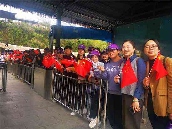 到達(dá)目的地,黨員高舉黨旗,老師們揮舞著手中的國(guó)旗緊隨其后,“精準(zhǔn)扶貧首倡地 十八洞村歡迎您”十四個(gè)大字映入眼簾,大家駐足觀(guān)看,并在此合影留念。