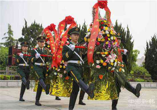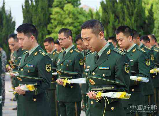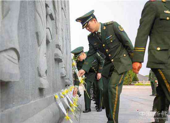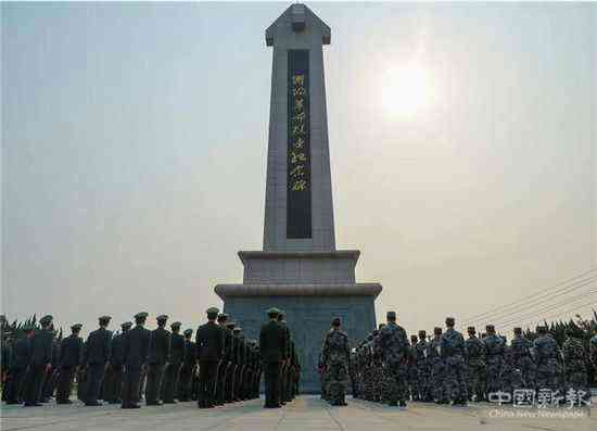 16時許,紀念活動正式開始。在莊嚴的國歌奏響后,全體官兵在紀念碑前肅穆佇立,脫帽默哀,深情緬懷革命先烈。隨著《獻花曲》音樂的響起,10名禮兵踏著深沉凝重的禮步,為革命先烈送上花籃。官兵們有序地瞻仰烈士紀念碑,并獻上花束,向革命烈士們致以敬意,寄去哀思。