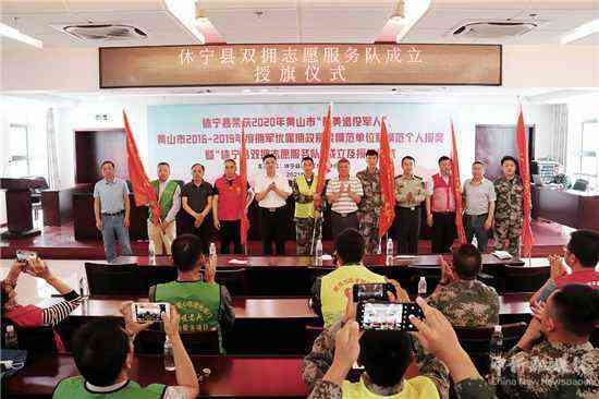 “我志愿加入雙擁志愿服務(wù)隊,我承諾:盡己所能,不計報酬;幫助他人,服務(wù)社會;踐行志愿奉獻(xiàn)精神,傳承愛國擁軍傳統(tǒng),為建設(shè)和諧美好社會貢獻(xiàn)力量!”48名志愿者代表身著志愿隊服,舉起右拳,莊嚴(yán)宣誓,鄭重承諾。5月13日,安徽省黃山市休寧縣舉行了黃山市首支雙擁志愿服務(wù)隊成立授旗儀式。該縣雙擁工作領(lǐng)導(dǎo)小組成員單位和21個鄉(xiāng)鎮(zhèn)、四個社區(qū)、駐軍部隊相關(guān)負(fù)責(zé)人以及雙擁志愿服務(wù)隊代表等近100人參加了成立授旗儀式。