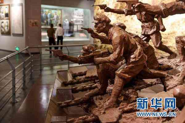 甕安縣猴場(chǎng)鎮(zhèn),猴場(chǎng)會(huì)議陳列館,有一座紅軍戰(zhàn)士與老鄉(xiāng)低頭扎竹筏的雕塑。