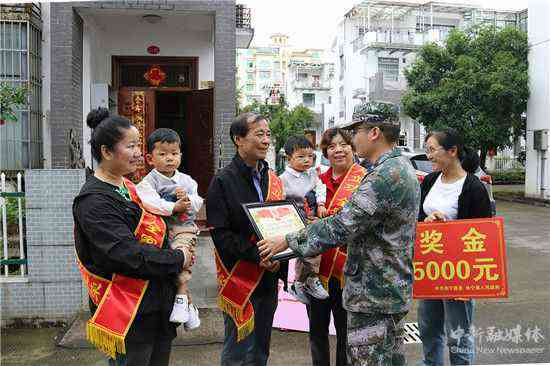 中國新報訊(通訊員 武時化 鄭翠濤 )拉橫幅、披綬帶、發(fā)獎狀、送獎金,真情問候……5月20日,安徽省黃山市休寧縣人武部、縣退役軍人事務(wù)局和海陽鎮(zhèn)退役軍人服務(wù)站負(fù)責(zé)同志來到海陽鎮(zhèn)萬寧社區(qū),將立功喜報和5000元獎金,送到榮立三等功現(xiàn)役軍人汪軍的父親手里,向他們?nèi)冶硎咀YR。