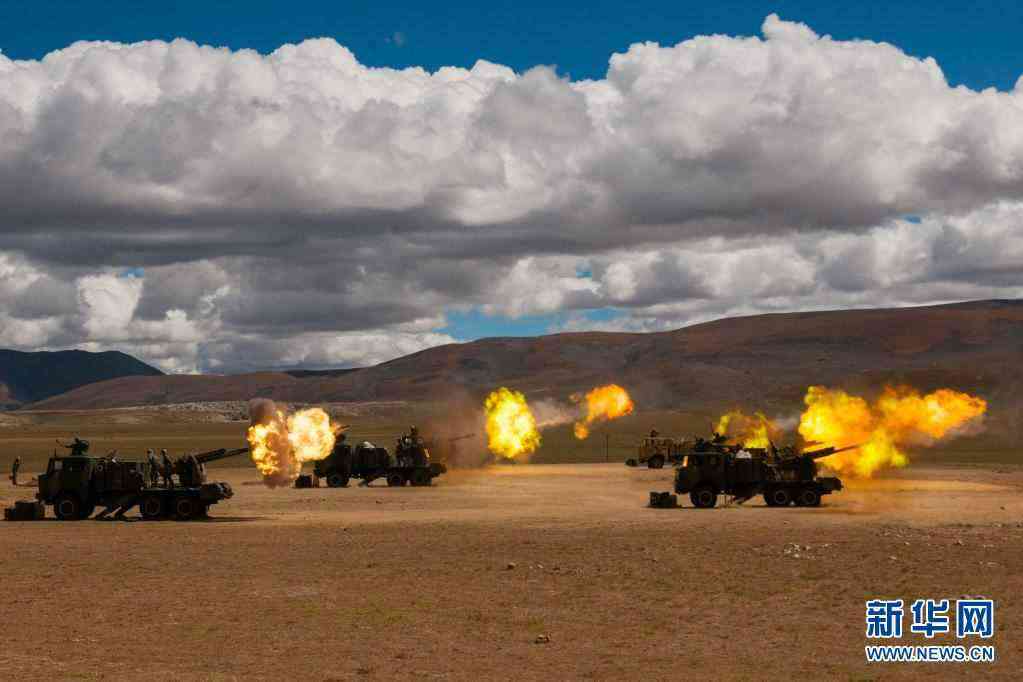 駐藏第77集團(tuán)軍某旅在演練中進(jìn)行火炮實(shí)彈射擊(2017年10月19日攝)。新華社發(fā)(王慶東 攝)